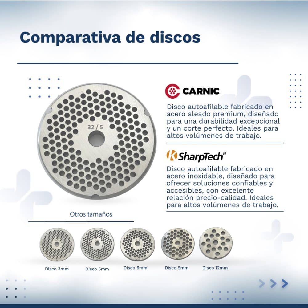 Incluye 1 disco K SharpTech SLV compatible con Picadora de Carne Nª32 Detalle de los discos Autoafilable. |